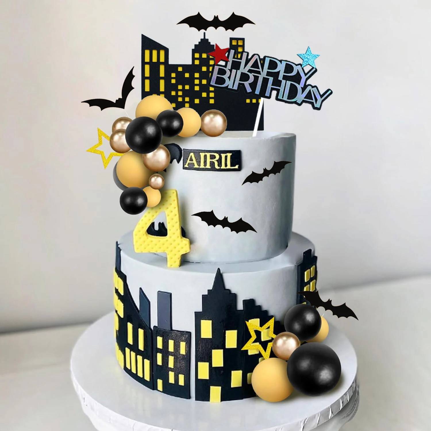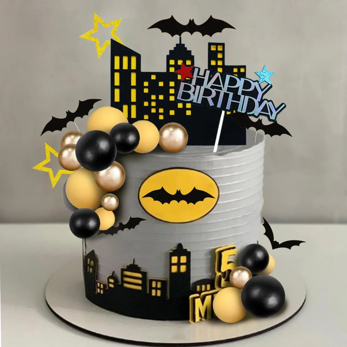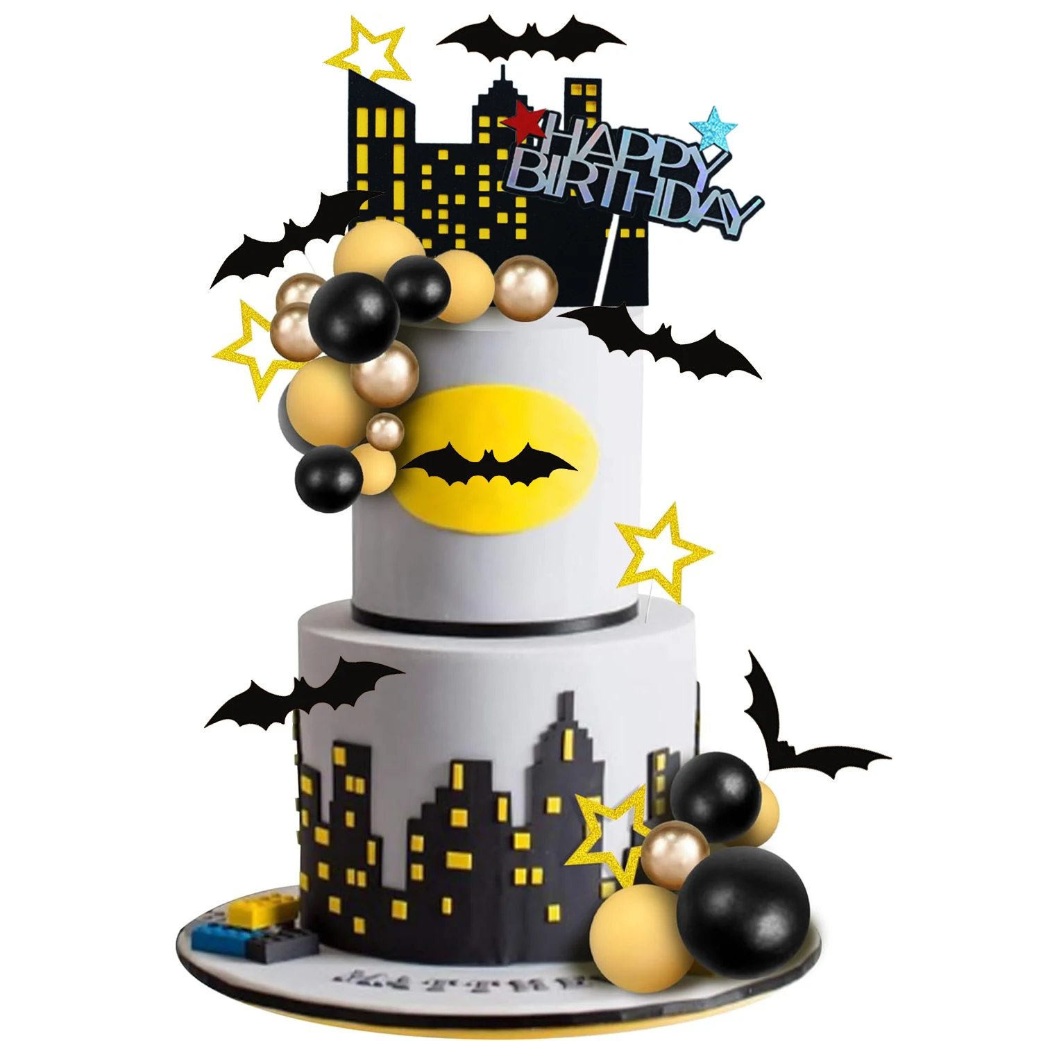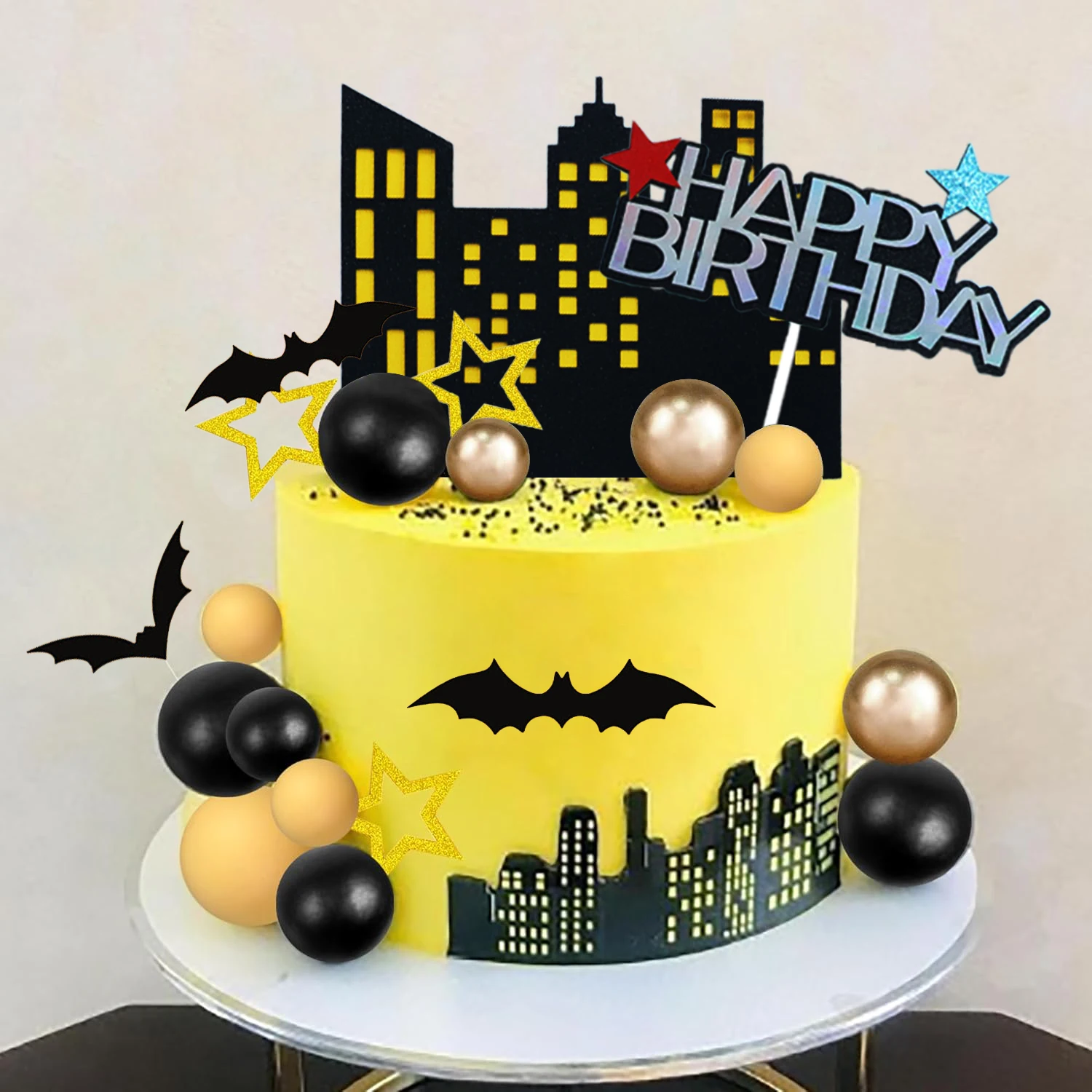 Materials:Bats, stars ,building and happy birthday cake topper are made of paper. Balls are made of foam